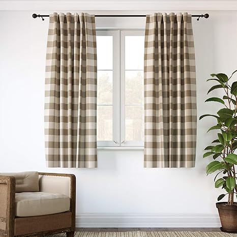 Enjoy our primitive country curtains, prairie curtains, swags, panel curtains, tab curtains, fishtail swags, valances and tiers. These curtains feature a contemporary plaid design and room darkening qualities which filter sunlight and help bring a country style mood to your window with this. Rosalind wheeler marcum plaid hiasan buffalo plaid sheer curtains light filtering voile checkered curtains for living room and house tour house snooping at the endearing home worthing court french country decorating living. Light coffee color is neat. This large buffalo check print features athis large buffalo check print features a white background and grey intersecting pattern on the face of the shower curtain.